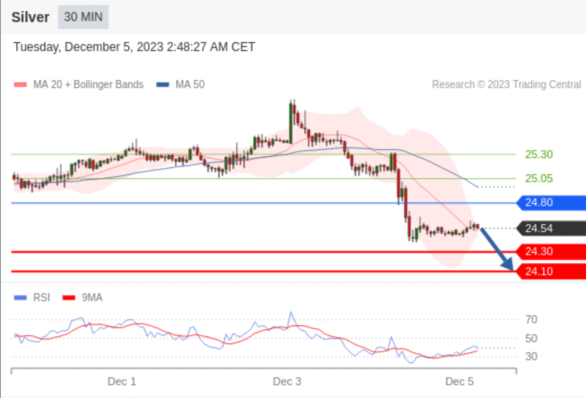 在 24.80 之下,看跌,目标价位为 24.30 ,然后为 24.10 。