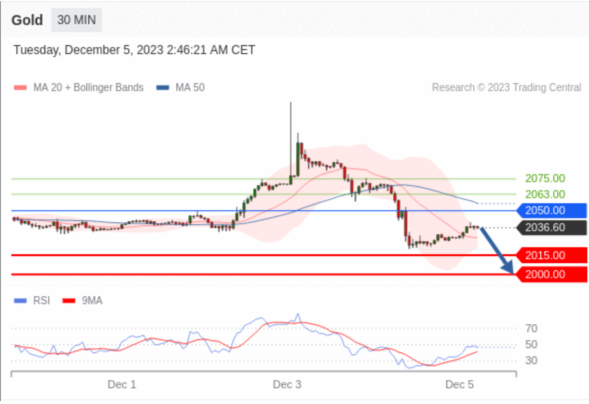 在 2050.00 之下,看跌,目标价位为 2015.00 ,然后为 2000.00 。