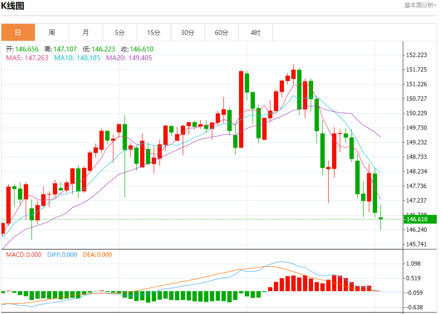 汇价高见147.107,低见146.223。上一交易日,汇价收于146.827。
