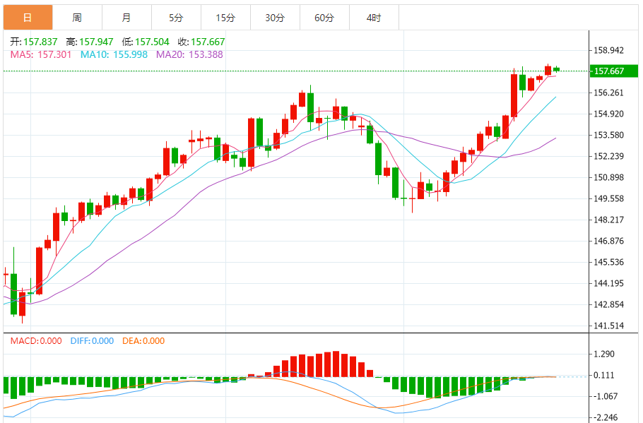 支撑位:157.40 157.47 157.52