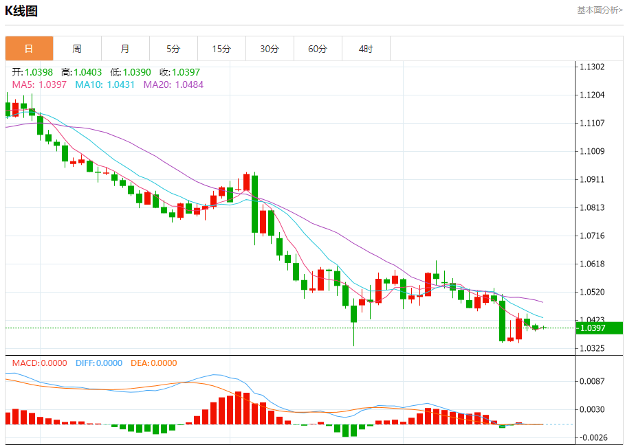 汇价高见1.0403,低见1.0390。上一交易日,汇价收于1.0391。