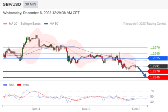 在 1.2625 之下,看跌,目标价位为 1.2570 ,然后为 1.2545 。