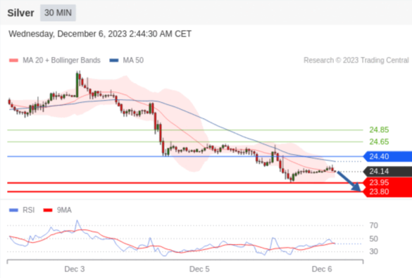 在 24.40 之下,看跌,目标价位为 23.95 ,然后为 23.80 。