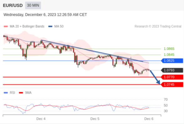 在 1.0825 之下,看跌,目标价位为 1.0770 ,然后为 1.0745 。