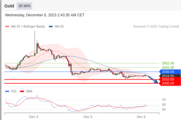 在 2030.00 之下,看跌,目标价位为 2010.00 ,然后为 2000.00 。
