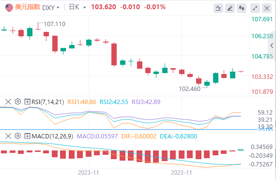 美元指数周一小幅走高,收复上周部分失地。追踪美元兑六种主要货币的ICE美元指数上升0.39%,至103.66。