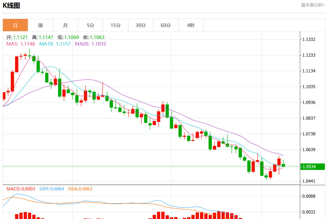 周一欧市盘中,欧元/美元最新报1.0536,日图跌0.43%.