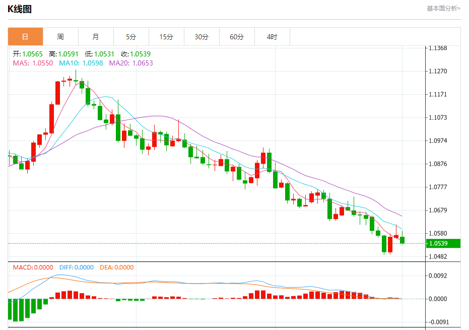 汇价高见1.0591,低见1.0531。上一交易日,汇价收于1.0573。