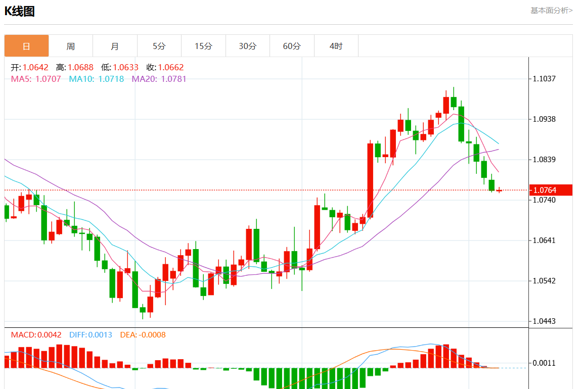 周四欧市盘中,欧元/美元最新报1.0763,日图跌0.01%.