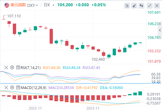 美国11月ADP就业人数录得10.3万人,为连续第四个月不及预期。尽管小非农表现不及预期,但随着市场押注欧洲央行最早将于明年3月降息,美元指数未跌反涨,并触及两个月高位。