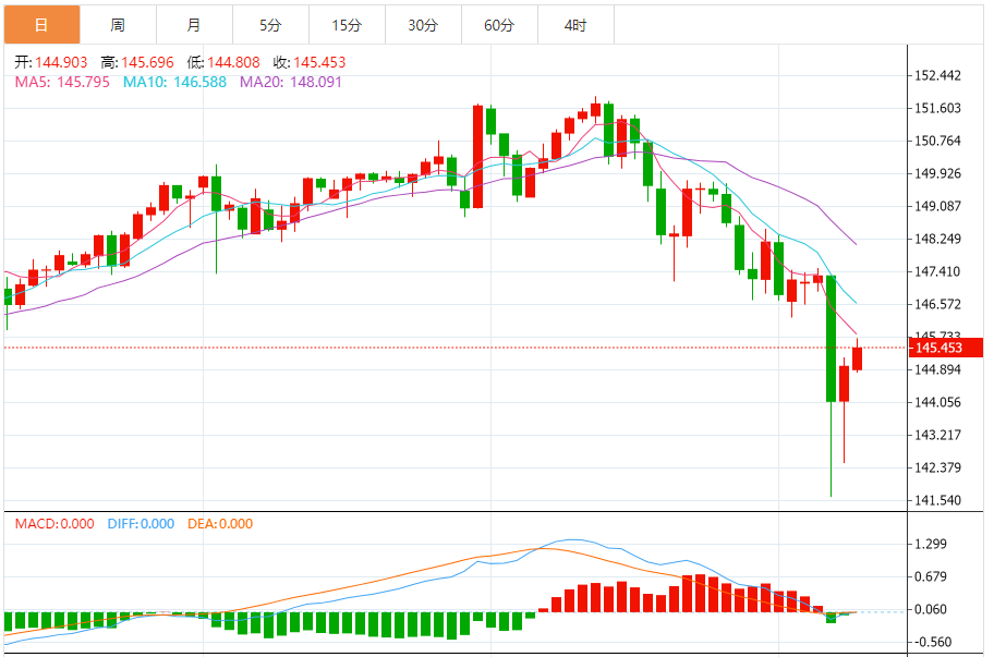 周一(12月11日),美元/日元下跌,暂报145.477,涨幅0.33%。