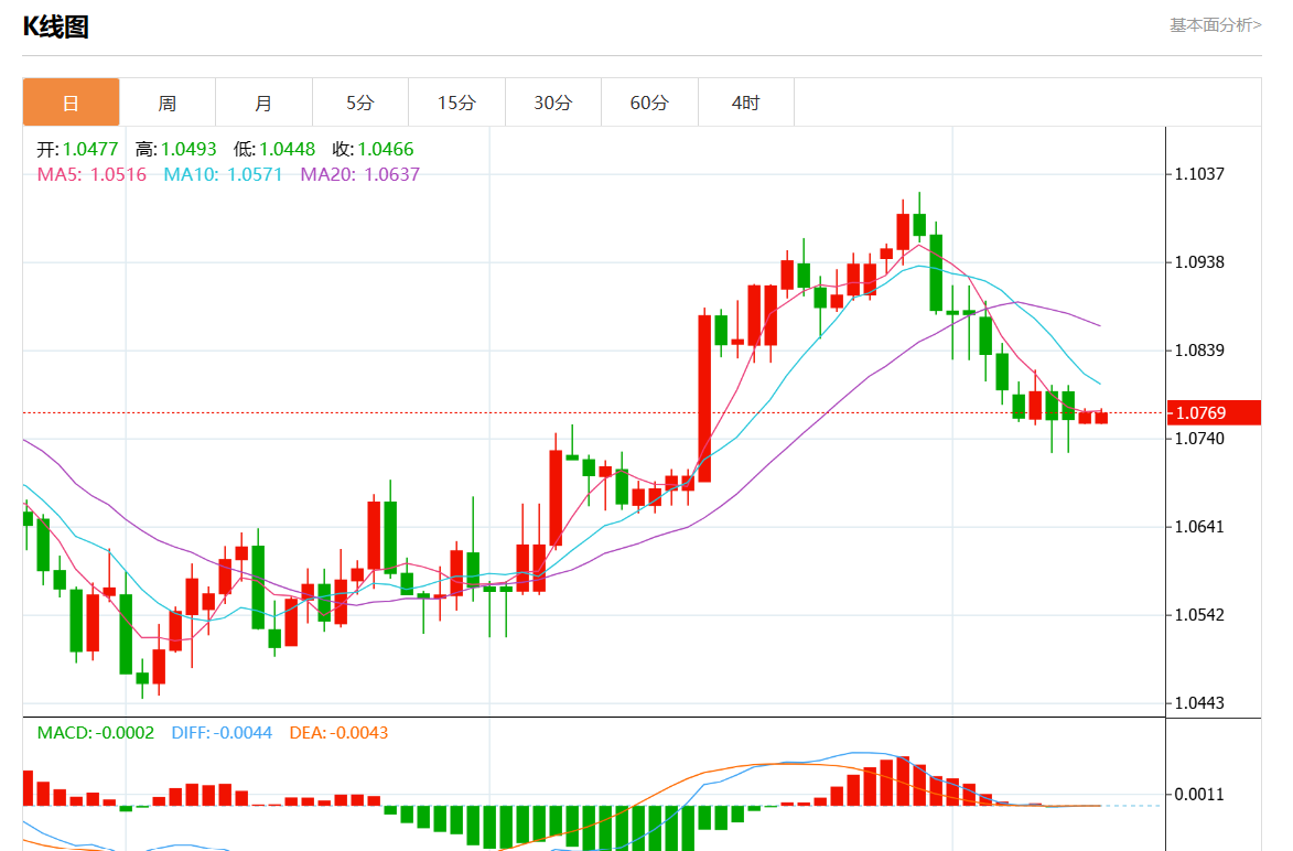 周一欧市盘中,欧元/美元最新报1.0768,日图涨0.06%.