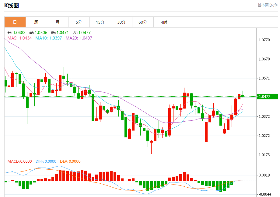 汇价高见1.0506,低见1.0471。上一交易日,汇价收于1.0488。