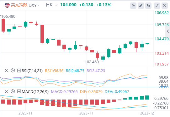 周五已升至104上方,现在需要维持在104上方,以保持106的上行目标不变,否则可能会回到102-104区间。