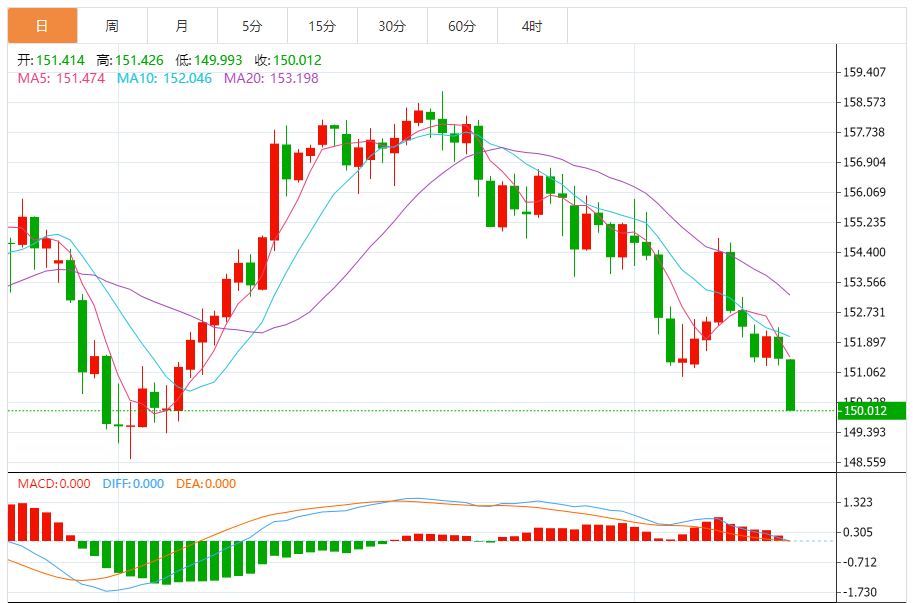周四(2月20日),美元/日元下跌150.018,暂报150.008,跌幅0.95%。