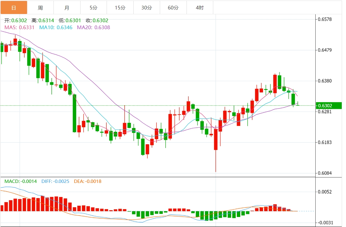 技术分析:澳元测试 0.6300 支撑位,看跌偏见出现