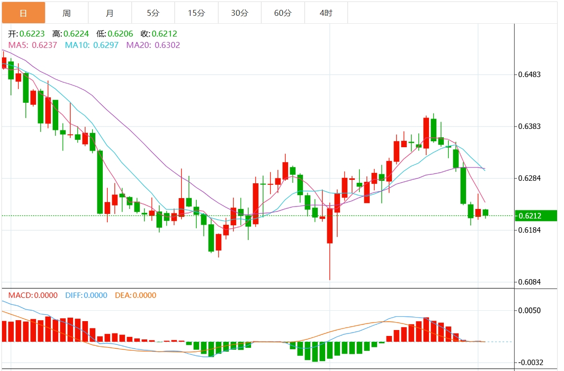澳元/美元技术分析:尽管看跌压力持续 澳元仍维持在 0.6200 支撑位上方