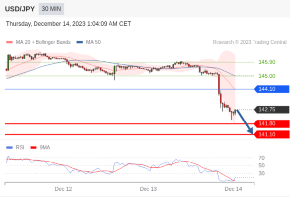 在 144.10 之下,看跌,目标价位为 141.80 ,然后为 141.10 。