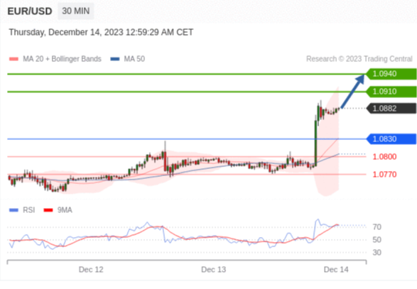 【XM交易平台】2023年12月14日亚盘交易建议:黄金、白银、欧元、英镑、日元、瑞郎交易点位技术分析及预测