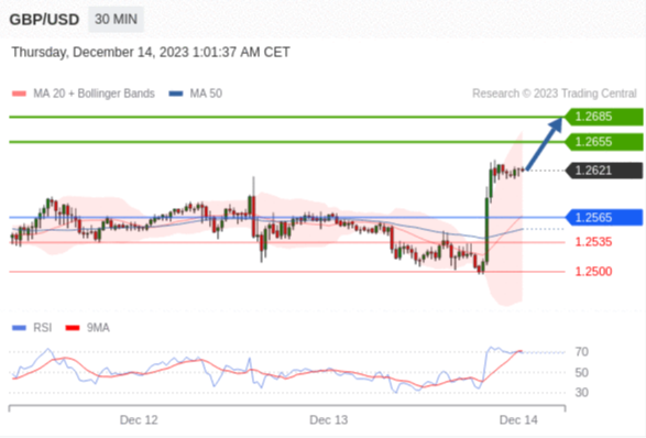 在 1.2565 之上,看涨,目标价位为 1.2655 ,然后为 1.2685 。