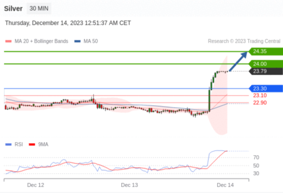 在 23.30 之上,看涨,目标价位为 24.00 ,然后为 24.35 。