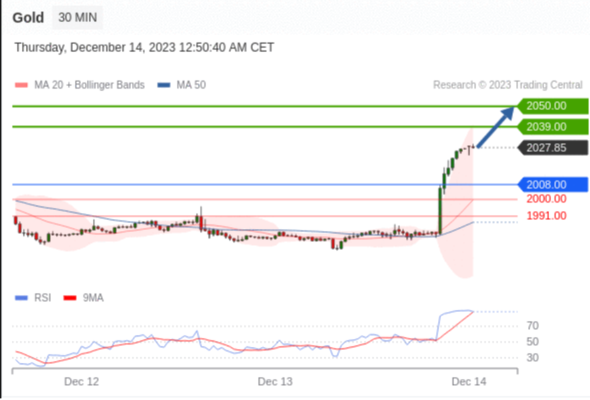 在 2008.00 之上,看涨,目标价位为 2039.00 ,然后为 2050.00 。