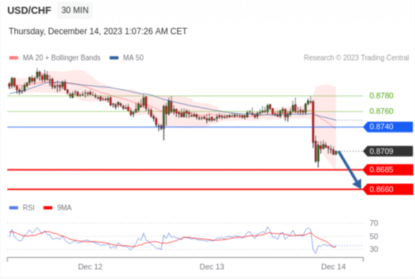在 0.8740 之下,看跌,目标价位为 0.8685 ,然后为 0.8660 。