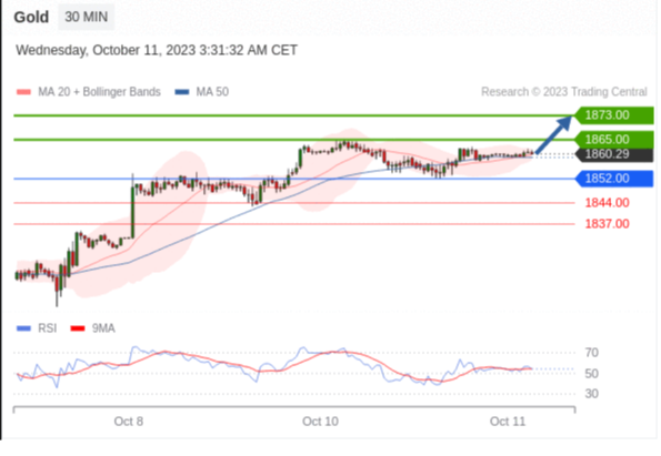 在 1852.00 之上,看涨,目标价位为 1865.00 ,然后为 1873.00 。
