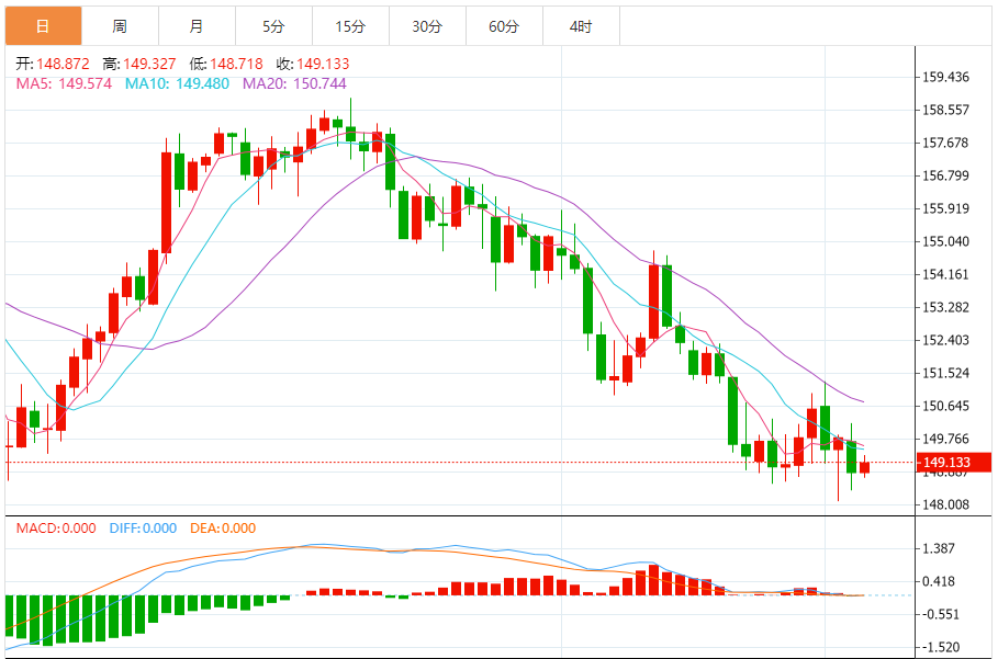 周四(3月6日),美元/日元上涨149.143,暂报149.134,涨幅0.18%。