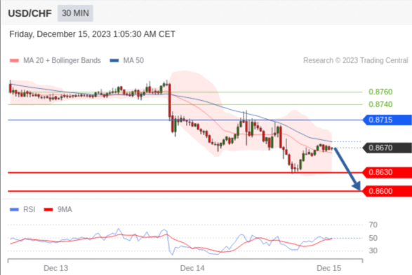 在 0.8715 之下,看跌,目标价位为 0.8630 ,然后为 0.8600 。