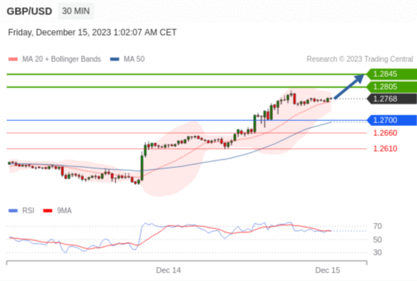 在 1.2700 之上,看涨,目标价位为 1.2805 ,然后为 1.2845 。