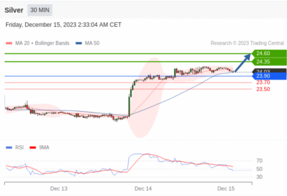在 23.90 之上,看涨,目标价位为 24.35 ,然后为 24.60 。