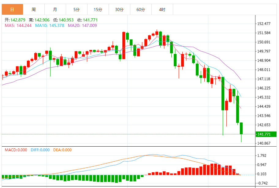 周四(12月14日),美元/日元下跌,暂报141.764,跌幅0.78%。