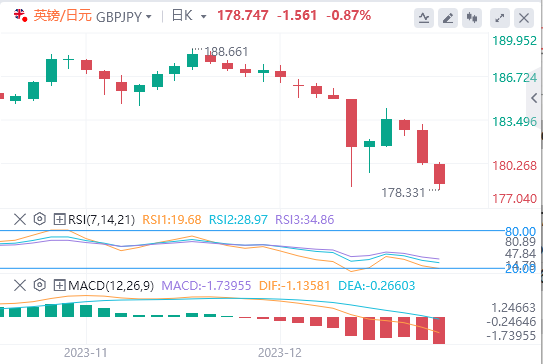 不过,英镑/日元在178.35附近获得一些支撑,该区域处在技术面关键的200日简单移动均线,同时日内晚些时候英国央行召开关键会议之前,交易员们避免展开新的看跌押注。不过,上述基本面背景表明,英镑/日元交叉盘下行阻力最小。也就是说,日线图相对强弱指标已跌破30大关,出现略超卖状况。