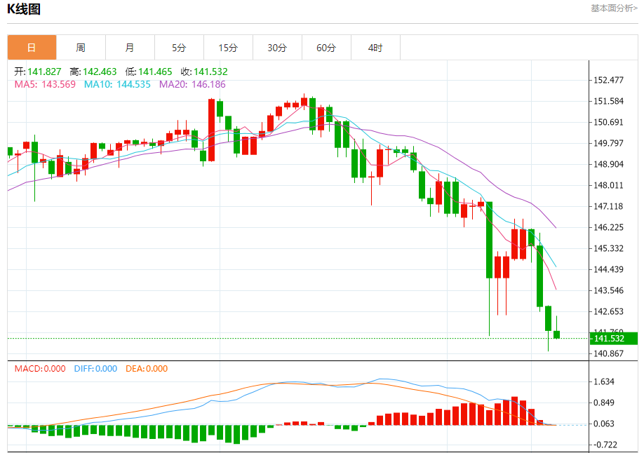 汇价高见142.463,低见141.465。上一交易日,汇价收于141.852。