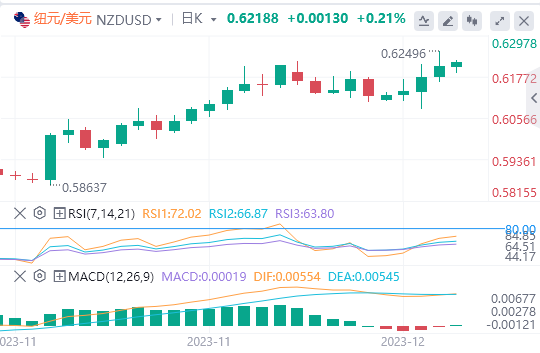 即使美国经济数据乐观,11月零售销售增长0.3%,初请失业金人数下降至20.2万,但也未能支撑美元。此外新西兰12月商业采购经理人指数上升至46.7,前值42.5,可能为纽元提供上行支撑。