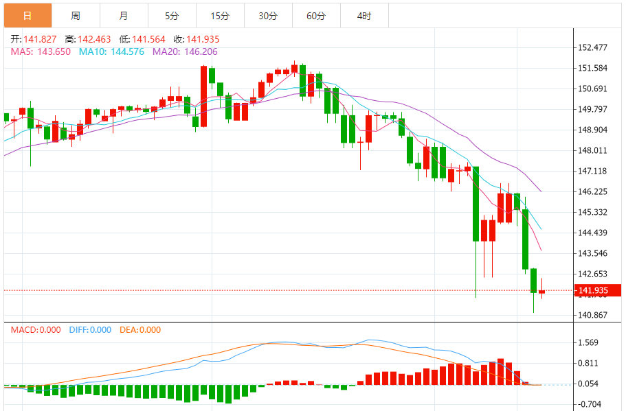 周五(12月15日),美元/日元上涨,暂报141.935,涨幅0.05%。