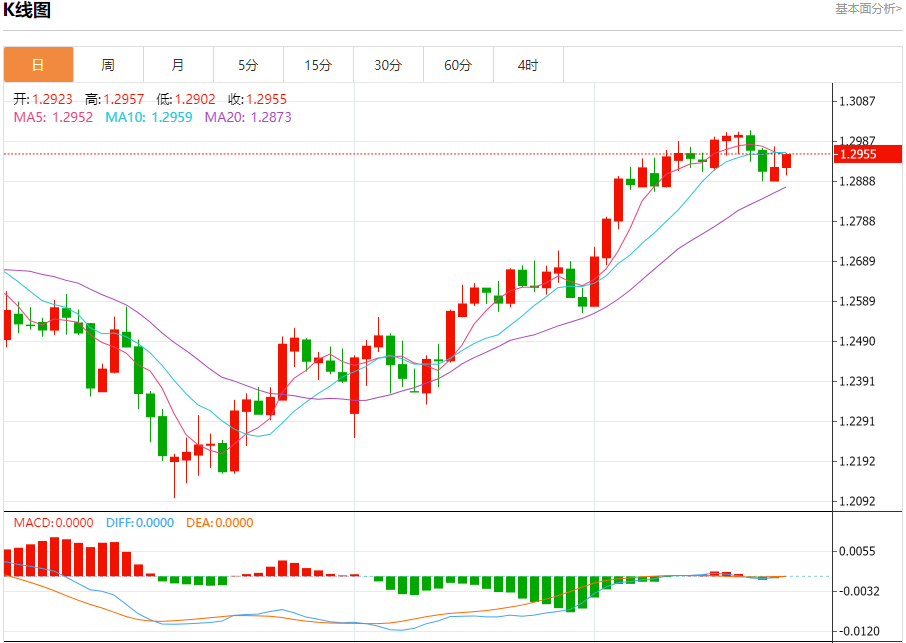 汇价高见1.2957,低见1.2902。上一交易日,汇价收于1.2923。