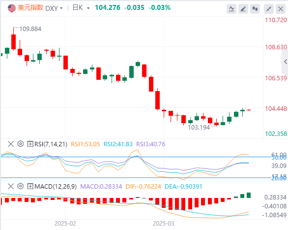 因数据显示美国3月商业活动回升,且报道称美国总统特朗普将在即将实施的关税上展现一定弹性,美元周一上涨,兑欧元和日元升至数周高点。追踪美元兑六种主要货币的美元指数(DXY)上涨0.26%,报104.30。