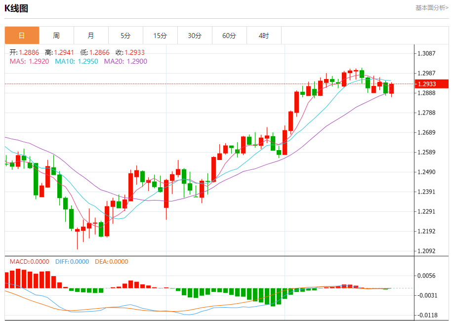 汇价高见1.2941,低见1.2866。上一交易日,汇价收于1.2887。