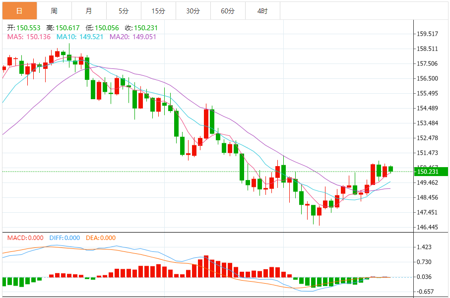 周四(3月27日),美元/日元下跌150.253,暂报150.243,跌幅0.21%。