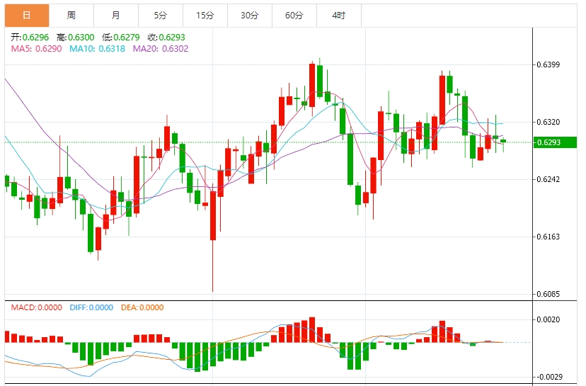 技术分析:澳元测试0.6300关口,接近九日EMA