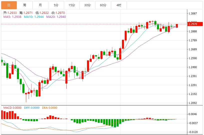 从技术面来看,英镑兑美元(GBP/USD)短期内保持上行势头,当前接近1.2965的水平。若突破这一关键位置,可能会进一步测试1.3000的心理关口。随着美元的疲软,英镑可能会继续上涨,挑战更高的水平。