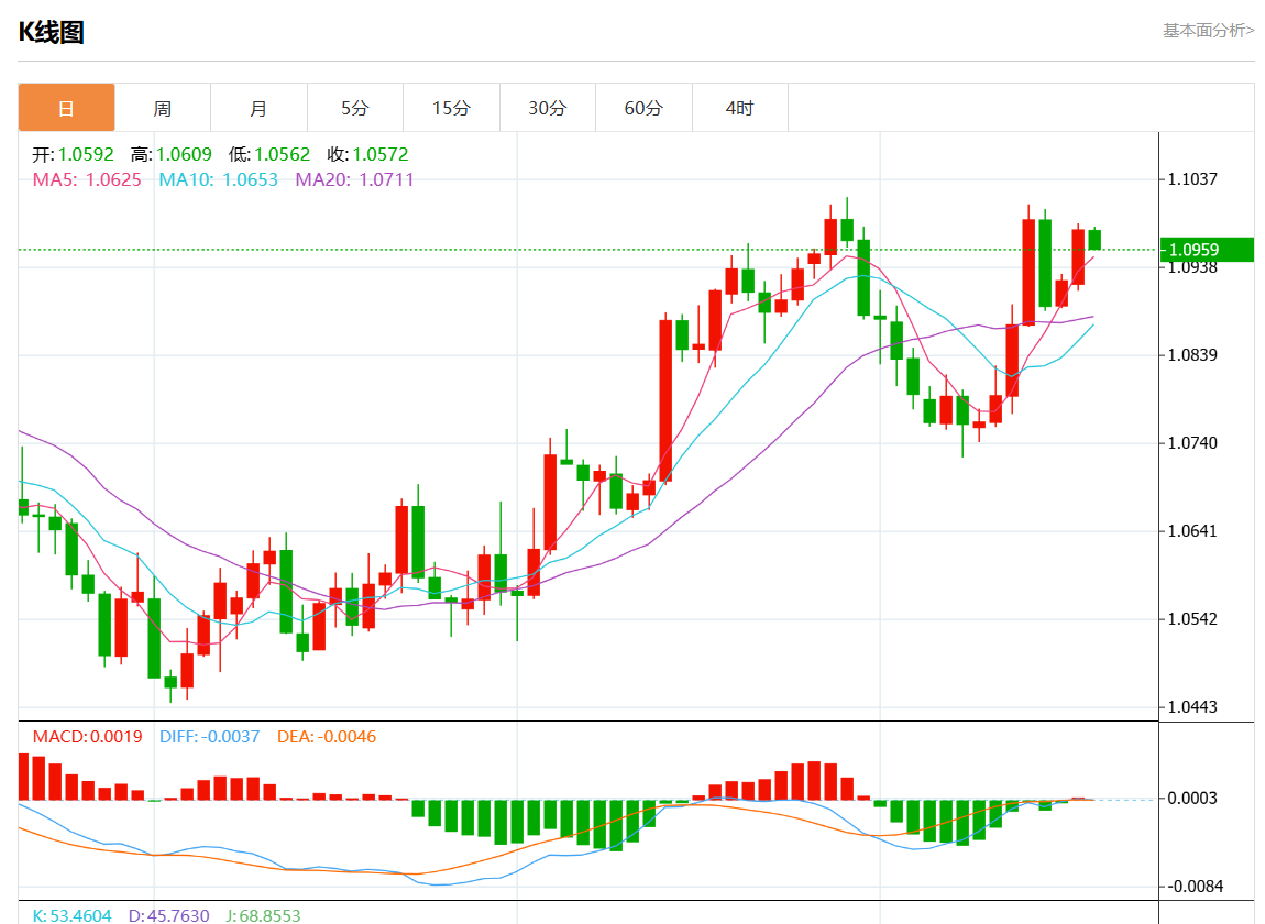 周四欧市盘中,欧元/美元最新报1.0945,日图涨0.05%.