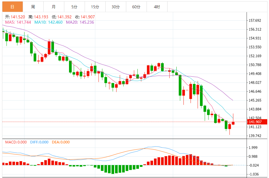 周三(4月23日),美元/日元上涨141.936,暂报141.915,涨幅0.25%。