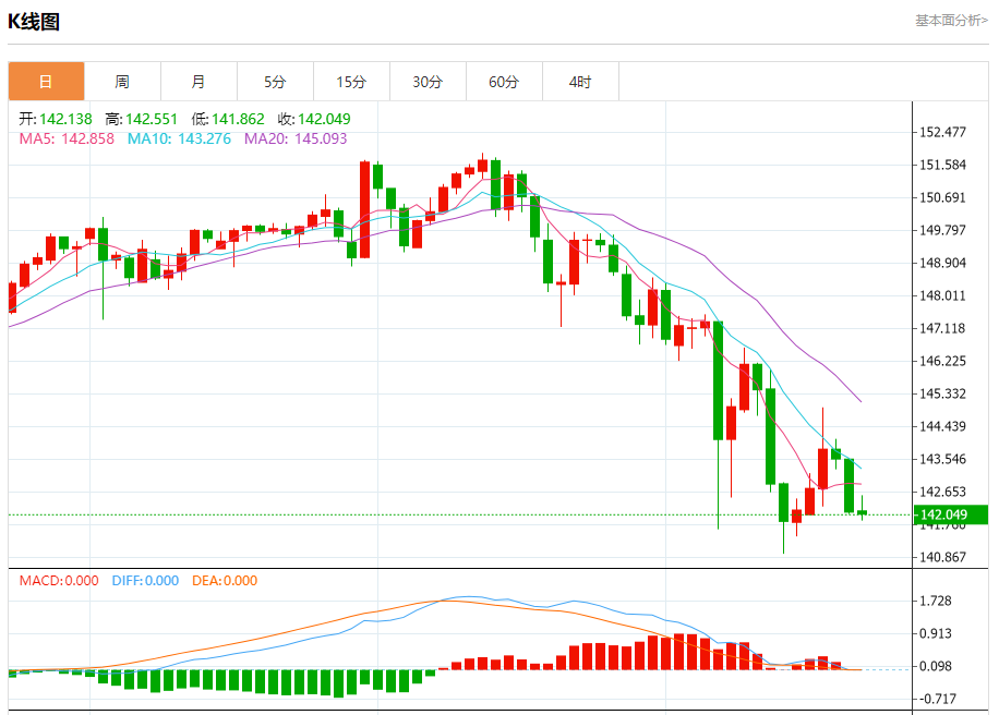 汇价高见142.551,低见141.859。上一交易日,汇价收于142.107。