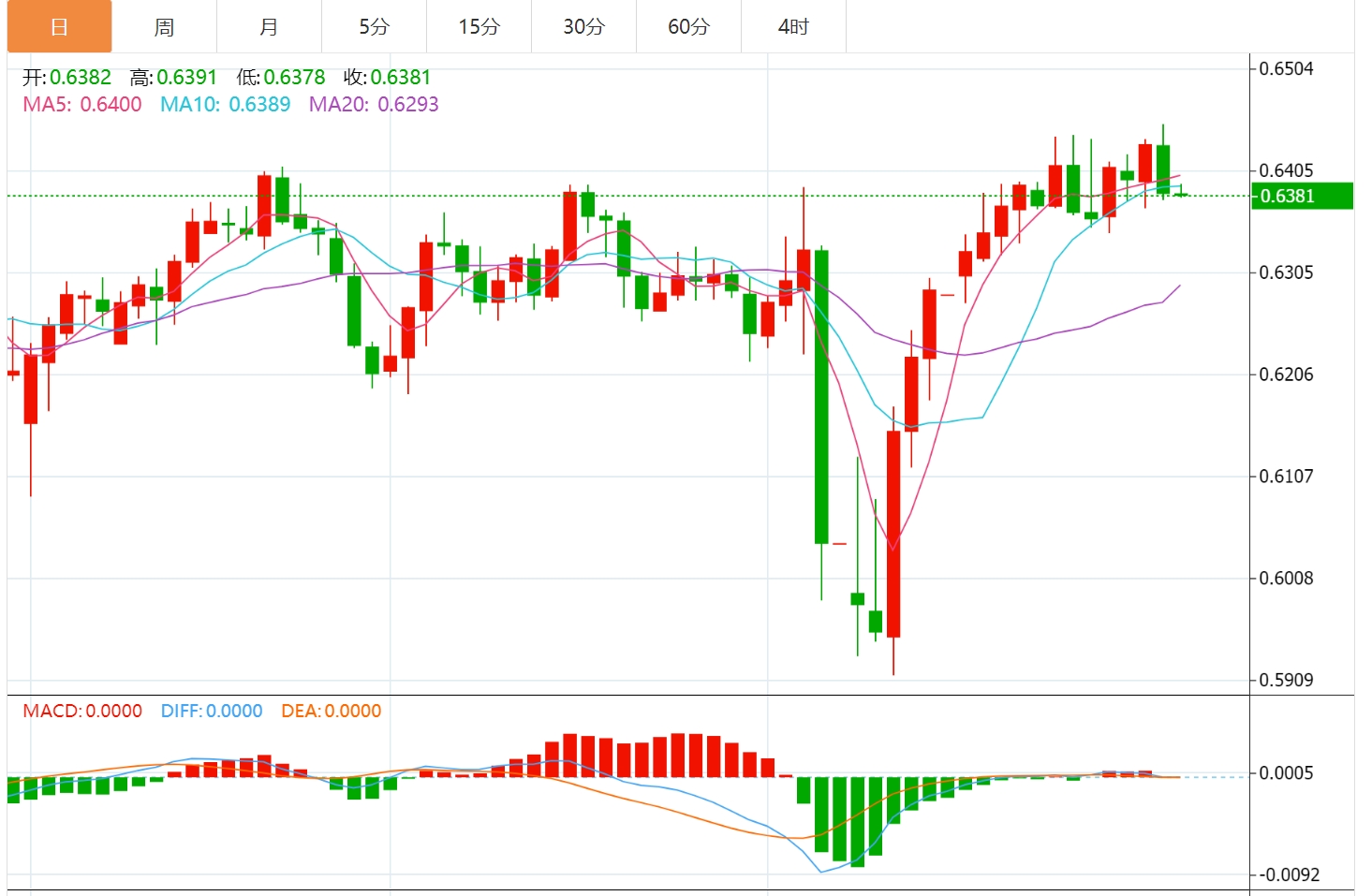 技术分析:澳元跌破0.6400;测试九日EMA
