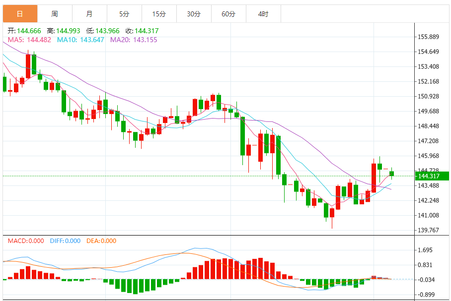 周一(5月5日),美元/日元下跌144.346,暂报144.334,跌幅0.38%。