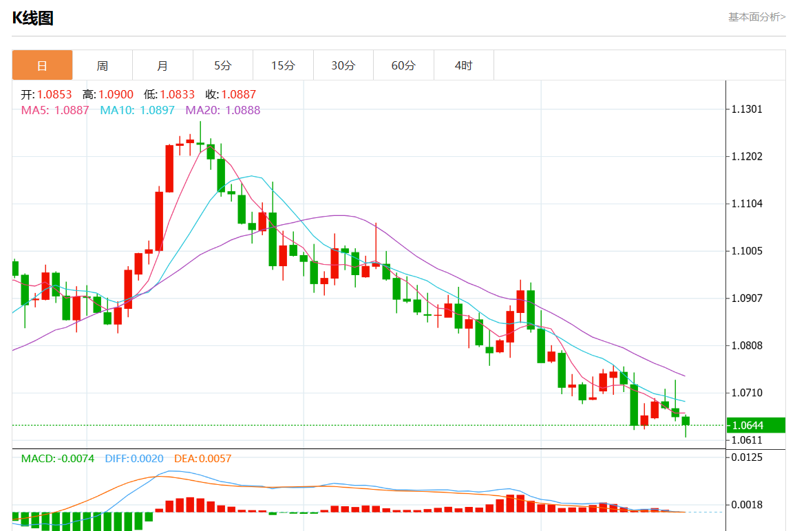 周四欧市盘中,欧元/美元最新报1.0642,日图跌0.17%.