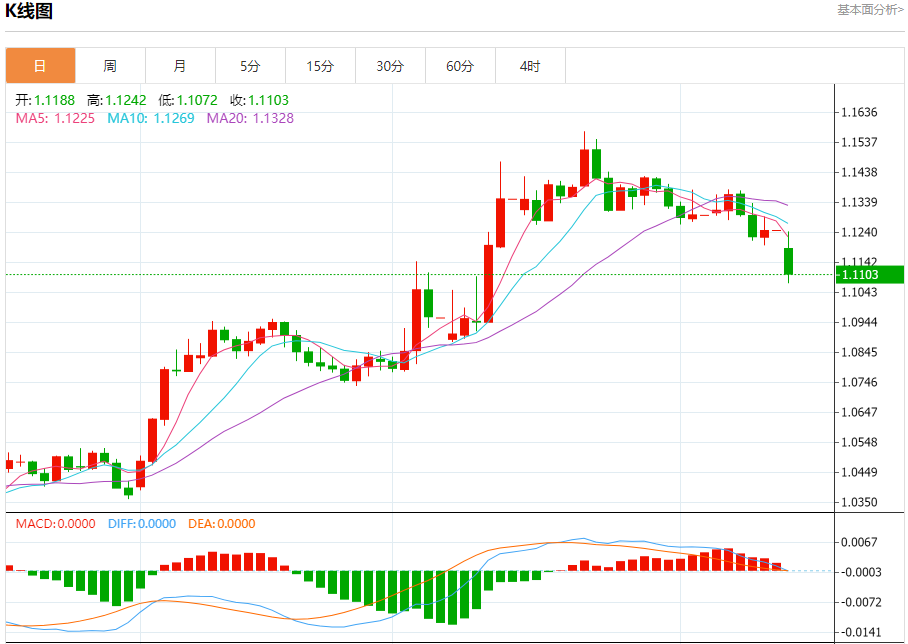 汇价高见1.1242,低见1.1071。上一交易日,汇价收于1.1247。